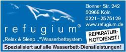 Wenn man ein Wasserbett sucht und gut beraten werden möchte, dann ist man bei r e f u g i u m genau richtig. Nachdem wir vor Jahren von einem Wasserbett zu einem Gel-Bett gewechselt hatten, sind die Rückenschmerzen zurückgekommen. Bei Refugium haben wir jetzt wieder ein Wasserbett gekauft und sind sehr zufrieden.